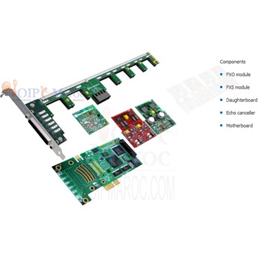 - Une seule interface PCI ou PCIe synchrone pour la totalité des 24 ports FXO/FXS.
