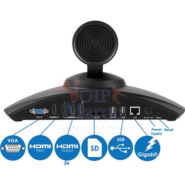 - Vidéo « Full-HD » 1080p, vidéoconférences pouvant accueillir jusqu'à 9 participants, prise en charge de 2 moniteurs externes via 2 sorties HDMI