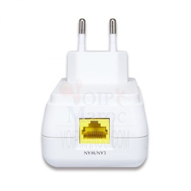 * Appuyez sur environ 3 à 6 secondes pour rétablir les paramètres d'usine par défautIndicateurs LED PWR, WPS, Ethernet, WLAN Matériel Plastique Dimensions (L x P x H) 55 x 75 x 40 mm Poids 80g (poids brut) Alimentation requise 100 ~ 240VAC Type de connecteur UE / USA Consommation d'énergie Etat: 2.1W Etat