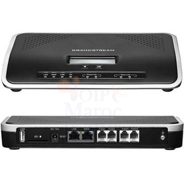 Intégré 2 ports FXO de ligne RTC, 2 ports FXS de téléphone analogique avec capacité de ligne de vie et jusqu'à 50 comptes de ligne SIP