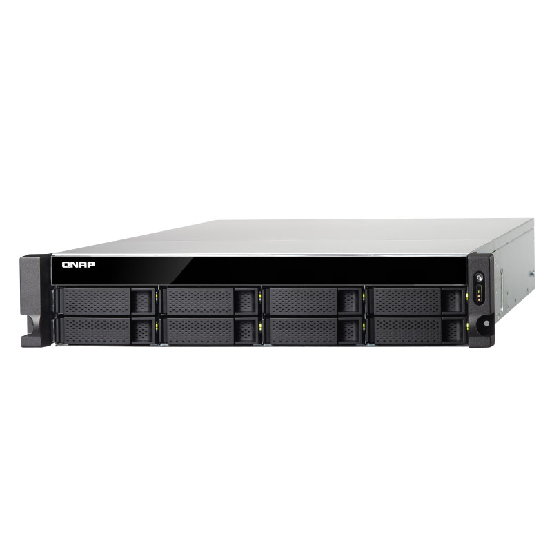 Serveur NAS QNAP avec 8 baies pour les disques durs. Processeur AnnapurnaLabs, une société amazonienne Alpine AL-324 cadencée à 1,7 GHz quad-core avec architecture ARM Cortex-A57 64 bits et cryptage à accélération matérielle. Il dispose de 4 Go de RAM DDR4 à 2400 MHz dans un seul emplacement extensible jusqu'à 8 Go, soit un total de 16 Go. Connexions 1 Gbit RJ45 et 10 Gbit SFP + intégrées. Deux ports d'extension PCIeFonctions spéciales Serveur NAS QNAP professionnel: