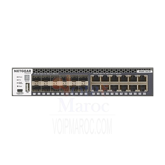NETGEAR XSM4324S - Switch manageable et stackable 24 x 10 Gigabit demi-largeur avec 12 x 10 Gigabit cuivre et 12 x SFP+ Niveau 3