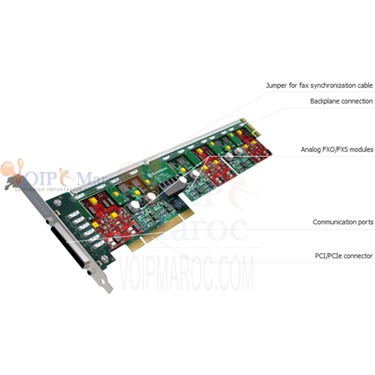 - Une seule interface PCI ou PCIe synchrone pour la totalité des 24 ports FXO/FXS.