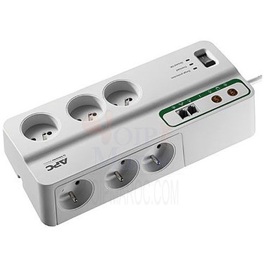 Protégez efficacement tous vos appareils électriques avec ce bloc parafoudre 6 prises PM6U-FR de APC contre contre la foudre, les surtensions et les pics de tensions.Avec les 2 ports RJ11 et les 2 sorties coaxiales, vous pourrez protégez modem/fax RJ-11, CATV/SATV/audio-vidéo.