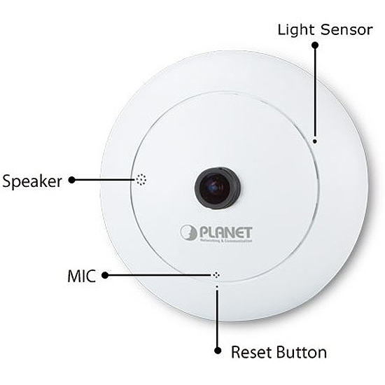 PLANET ICA-8200 La caméra IP Fish-Eye PoE de 2 mégapixels prend en charge les formats de compression H.264, MPEG-4 et JPEG et offre une excellente qualité d'image jusqu'à 1440 x 1440 pixels à 15 images par seconde (fps). Intégrant le capteur professionnel de résolution de 2 méga-pixels, l'ICA-8200 fournit des images de haute qualité et une fonction panoramique avec vue quadruple pour permettre l'affichage simultané d'images de surveillance et d'enregistrement sous quatre angles différents. Il offre une vue panoramique à 180 ° par une installation murale et une vue panoramique 360 ° dans le déploiement d'un montage au plafond. Par conséquent, les utilisateurs n'ont pas besoin d'installer plusieurs caméras IP et économisent ainsi des coûts d'installation et de maintenance considérables. De plus, sa conception unique en fait la solution idéale pour les applications de surveillance dans les boutiques, les magasins, les restaurants, les espaces publics intérieurs, etc
