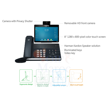 efficace et continue avec n’importe quel interlocuteur.Le téléphone Yealink T49G est doté d'un écran couleurs LCD, tactile en full HD, qui permet une utilisation optimale. En effet, le menu, les différentes fonctionnalités et l'organisation des visioconférences sont ainsi simple d'accès.