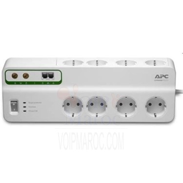 Informations générales sur le produitMarque : APCNom du produit : APC prise parafoudre PMF83VT-FRCatégorie : PARAFOUDRE-SURTENSEURGénéralType de périphérique : Protection contre les surtensions - externeLocalisation : Belgique, FranceCouleur : BlancPériphérique d'alimentationDétails sur les connecteurs de sortie : 8 x alimentation CEE 7-5Capacité d'alimentation : 2300 WattTension d'entrée : CA 230 VFréquence requise : 50 HzLimiteur de surtension pour lignes de données : Ligne téléphonique - RJ-11 - 1 ligne d'entrée - 1 ligne de sortieCoaxial - 1 ligne d'entrée - 1 ligne de sortieParasurtenseur : OuiTemps de réponse sur coupure : 1 nsIndice de consommation d'énergie sur coupure : 2690 JoulesProtection du circuit : DisjoncteurFiltration de bruit EMI-RFI : 60 dBCourant électrique max : 10 AConnecteurs d'entrée : 1 x alimentation CEE 7-5DiversCâbles inclus : Câble d'alimentation - intégré - 3 mCertificats de conformité RoHS, REACHCaractéristiques d’environnementTempérature de fonctionnement mini : 0 °CTempérature de fonctionnement maxi : 40 °CTaux d'humidité en fonctionnement : 0 - 95%Dimensions et poidsLargeur : 32.7 cmPoids : 940 gHauteur : 6.2 cmProfondeur : 11 cm - Plus d'images (1)