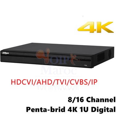 DVR 8 Canaux Penta-brid 4K 1U En Stock Caractéristiques Techniques8 canaux Penta-brid 4K 1U DVR XVR5208AN-4K> Enregistrement: 4K, 5MP, 4MP, 3MP, 1080P, 720P, 960H, D1, CIF, QCIF> Compression vidéo double flux H.264 + / H.264> Prend en charge les entrées vidéo HDCVI / AHD / TVI / CVBS / IP (+4 IP CH)> Max 12 entrées de caméra IP, chaque canal jusqu'à 8MP> Bande passante maximale de 48Mbps> Recherche intelligente et système vidéo intelligent