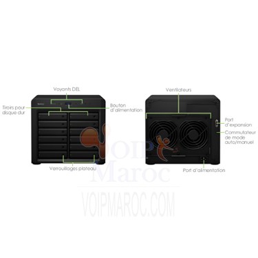 BSMI Class BNiveau sonore 27,2 dB Représentation / réalisation Classe de dispositif Home & Home Office Puissance Capacité de l'unité d'alimentation (PSU) 500 W Consommation électrique 51,23 W Tension d'entrée AC 100-240 V Fréquence d'entrée AC 50/60 Hz Poids et dimensions Largeur 270 mm Profondeur 340 mm Hauteur 300 mm Poids 9,02 kg Contenu de l'emballage Logiciels fournis Synology DS3615xs