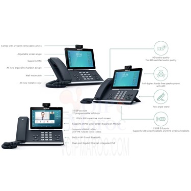 - Ecran tactile 7 pouces- Ecran ajustable- Jusqu'à 16 comptes SIP- Conférence jusqu'à 5 participants- Conférence vidéo jusqu'à 3 participants- Caméra HD CAM50- OS Android 5.1.1- Bluetooth 4.0- WiFi 802.3- Pour USB 2.0- Codec Audio Opus- Montage mural possible- Alimentation PoE- Garantie 1 an - Plus d'images (4)